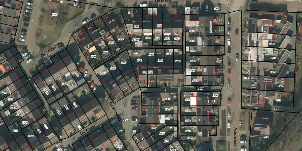 Gebruik de zoekbalk of klik op een perceel voor informatie over de adressen binnen dit perceel.