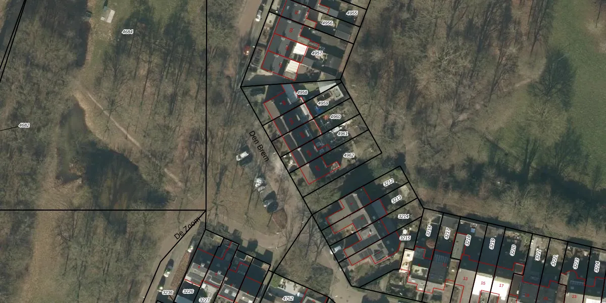 Den Brem 105 is gelegen op kadastraal perceel GLE01E4961. Deze kadastrale aanduiding is uniek en wordt gebruikt door het Kadaster om eigendomsrechten en andere zakelijke rechten vast te leggen. Het perceel maakt onderdeel uit van de kadastrale gemeente Goirle.