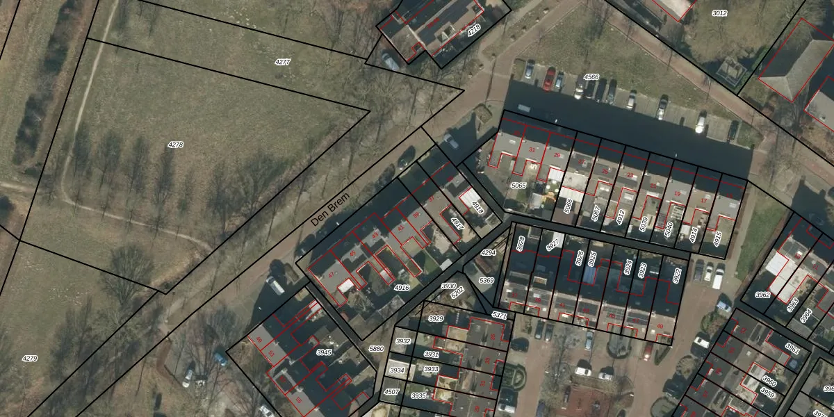 Den Brem 39 is gelegen op kadastraal perceel GLE01E4916. Deze kadastrale aanduiding is uniek en wordt gebruikt door het Kadaster om eigendomsrechten en andere zakelijke rechten vast te leggen. Het perceel maakt onderdeel uit van de kadastrale gemeente Goirle.
