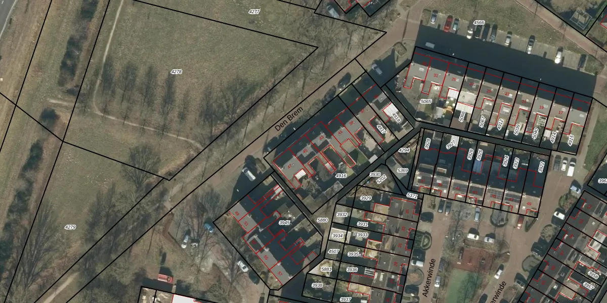 Het perceel waarop Den Brem 45 staat heeft een oppervlakte van 781 m². Dit is een groot perceel. De perceeloppervlakte wordt geregistreerd door het Kadaster. Gedetailleerde informatie over de maten van dit perceel kunt u vinden in het rapport Kadastrale kaart met maatvoering van Den Brem 45.