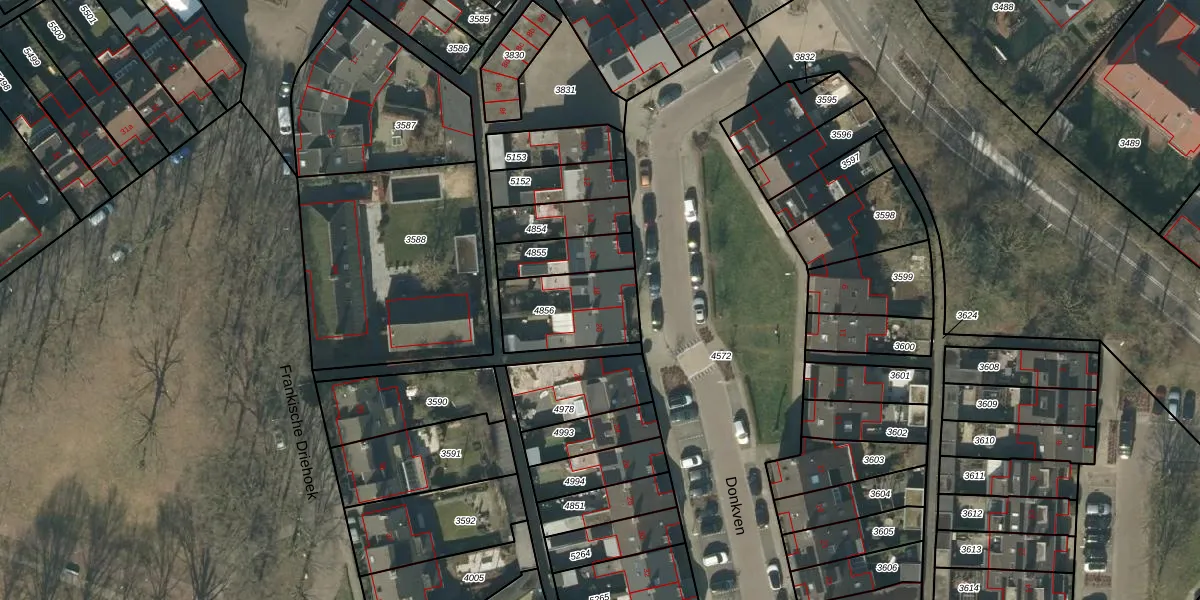 Het perceel waarop Donkven 18 staat heeft een oppervlakte van 283 m². Dit is een middelgroot perceel. De perceeloppervlakte wordt geregistreerd door het Kadaster. Gedetailleerde informatie over de maten van dit perceel kunt u vinden in het rapport Kadastrale kaart met maatvoering van Donkven 18.