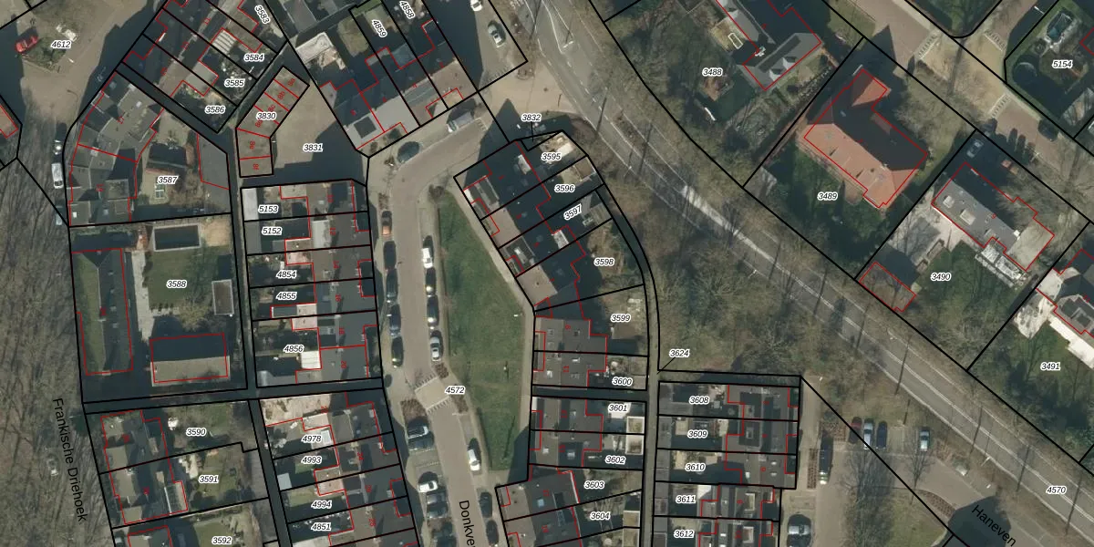 Het perceel waarop Donkven 7 staat heeft een oppervlakte van 214 m². Dit is een middelgroot perceel. De perceeloppervlakte wordt geregistreerd door het Kadaster. Gedetailleerde informatie over de maten van dit perceel kunt u vinden in het rapport Kadastrale kaart met maatvoering van Donkven 7.
