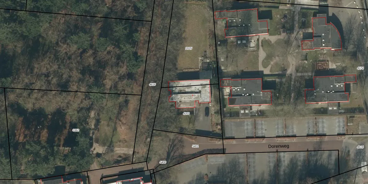 Dorenweg 4 is gelegen op kadastraal perceel GLE01A4203. Deze kadastrale aanduiding is uniek en wordt gebruikt door het Kadaster om eigendomsrechten en andere zakelijke rechten vast te leggen. Het perceel maakt onderdeel uit van de kadastrale gemeente Goirle.