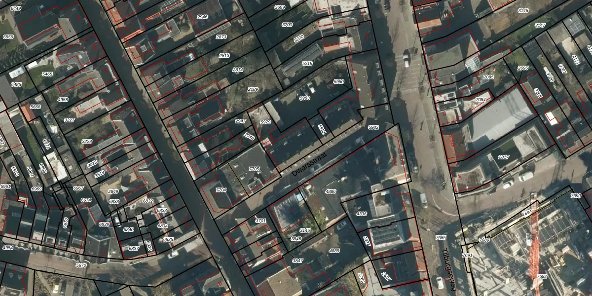 Dwarsstraat 1 is gelegen op kadastraal perceel GLE01B5979. Deze kadastrale aanduiding is uniek en wordt gebruikt door het Kadaster om eigendomsrechten en andere zakelijke rechten vast te leggen. Het perceel maakt onderdeel uit van de kadastrale gemeente Goirle.