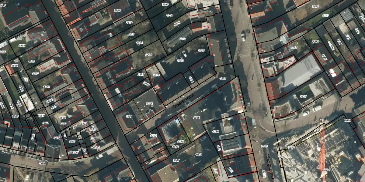 Dwarsstraat 25 is gelegen op kadastraal perceel GLE01B5979. Deze kadastrale aanduiding is uniek en wordt gebruikt door het Kadaster om eigendomsrechten en andere zakelijke rechten vast te leggen. Het perceel maakt onderdeel uit van de kadastrale gemeente Goirle.