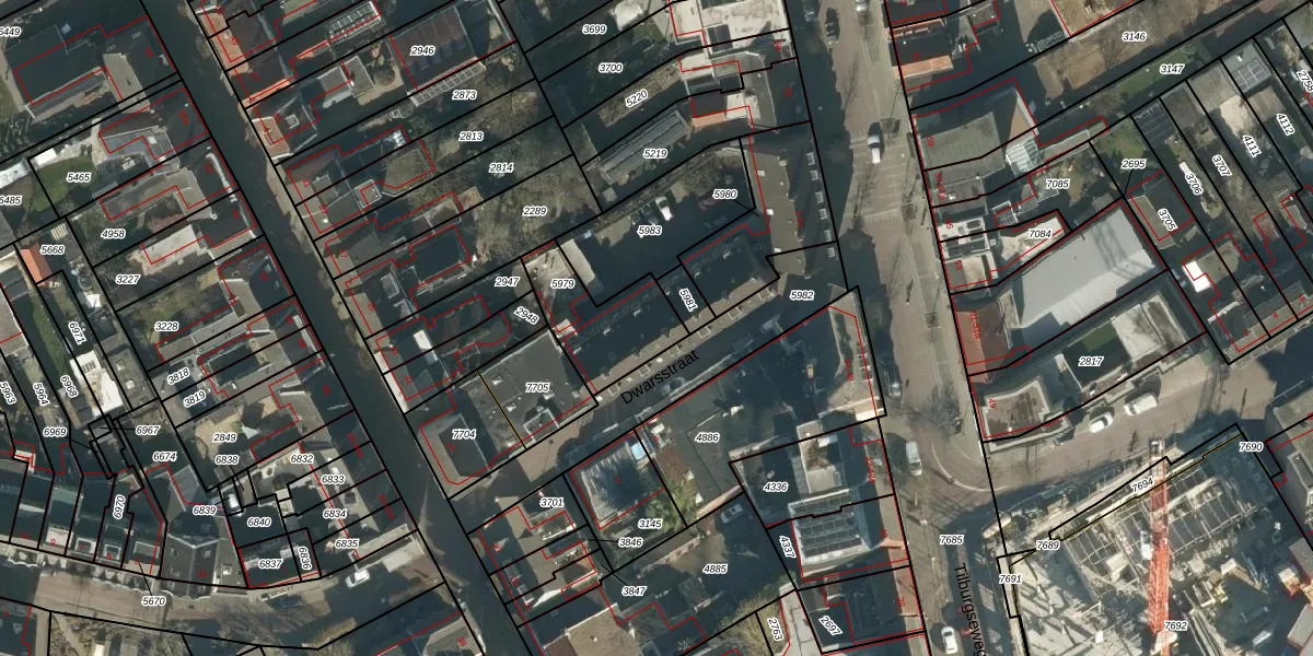 Dwarsstraat 41 is gelegen op kadastraal perceel GLE01B5979. Deze kadastrale aanduiding is uniek en wordt gebruikt door het Kadaster om eigendomsrechten en andere zakelijke rechten vast te leggen. Het perceel maakt onderdeel uit van de kadastrale gemeente Goirle.