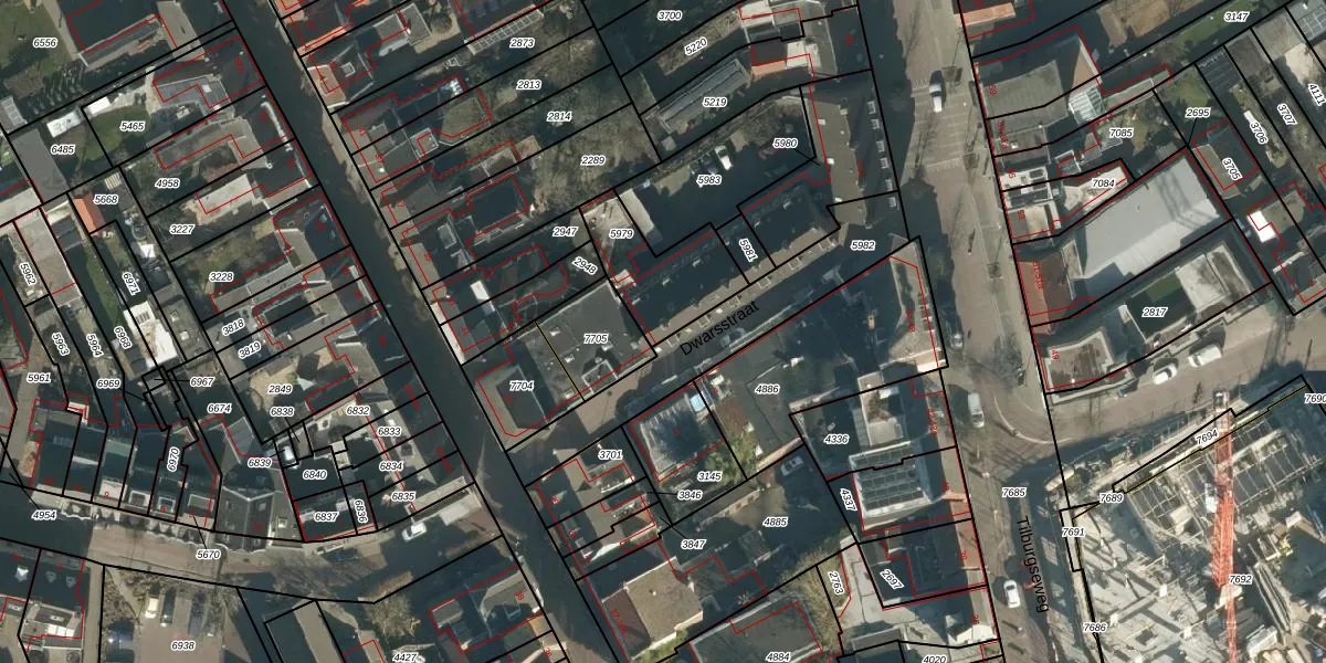 Dwarsstraat 45 is gelegen op kadastraal perceel GLE01B5979. Deze kadastrale aanduiding is uniek en wordt gebruikt door het Kadaster om eigendomsrechten en andere zakelijke rechten vast te leggen. Het perceel maakt onderdeel uit van de kadastrale gemeente Goirle.
