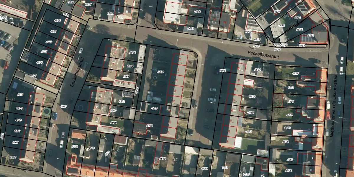Eeckelbosstraat 19 is gelegen op kadastraal perceel GLE01B5460. Deze kadastrale aanduiding is uniek en wordt gebruikt door het Kadaster om eigendomsrechten en andere zakelijke rechten vast te leggen. Het perceel maakt onderdeel uit van de kadastrale gemeente Goirle.
