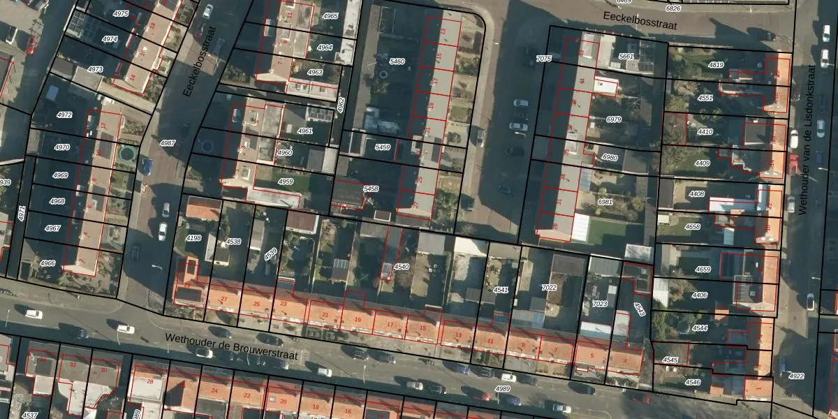 Eeckelbosstraat 27 is gelegen op kadastraal perceel GLE01B5458. Deze kadastrale aanduiding is uniek en wordt gebruikt door het Kadaster om eigendomsrechten en andere zakelijke rechten vast te leggen. Het perceel maakt onderdeel uit van de kadastrale gemeente Goirle.