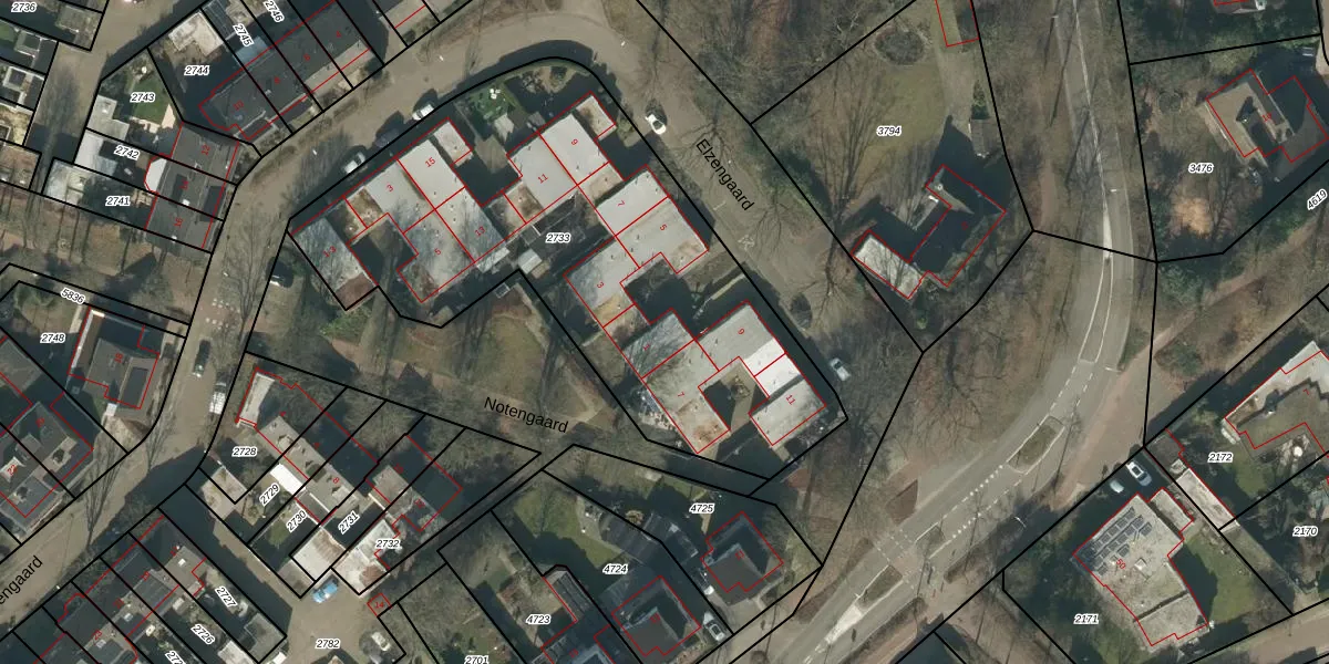 Het perceel waarop Elzengaard 1 staat heeft een oppervlakte van 2450 m². Dit is een zeer groot perceel. De perceeloppervlakte wordt geregistreerd door het Kadaster. Gedetailleerde informatie over de maten van dit perceel kunt u vinden in het rapport Kadastrale kaart met maatvoering van Elzengaard 1.