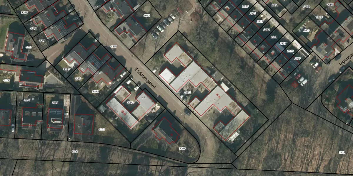 Het perceel waarop Esdoorngaard 19 staat heeft een oppervlakte van 1980 m². Dit is een zeer groot perceel. De perceeloppervlakte wordt geregistreerd door het Kadaster. Gedetailleerde informatie over de maten van dit perceel kunt u vinden in het rapport Kadastrale kaart met maatvoering van Esdoorngaard 19.