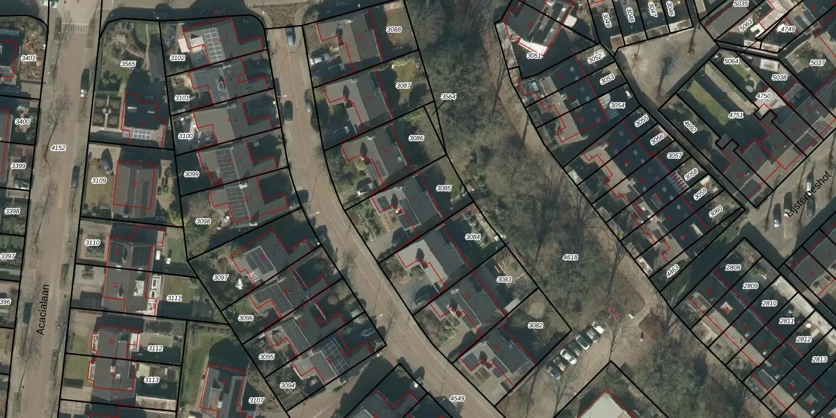 Gebruik de zoekbalk of klik op een perceel voor informatie over de adressen binnen dit perceel.