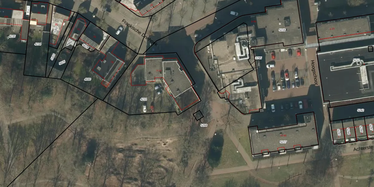 Het perceel waarop Frankische Driehoek 8 staat heeft een oppervlakte van 1204 m². Dit is een zeer groot perceel. De perceeloppervlakte wordt geregistreerd door het Kadaster. Gedetailleerde informatie over de maten van dit perceel kunt u vinden in het rapport Kadastrale kaart met maatvoering van Frankische Driehoek 8.