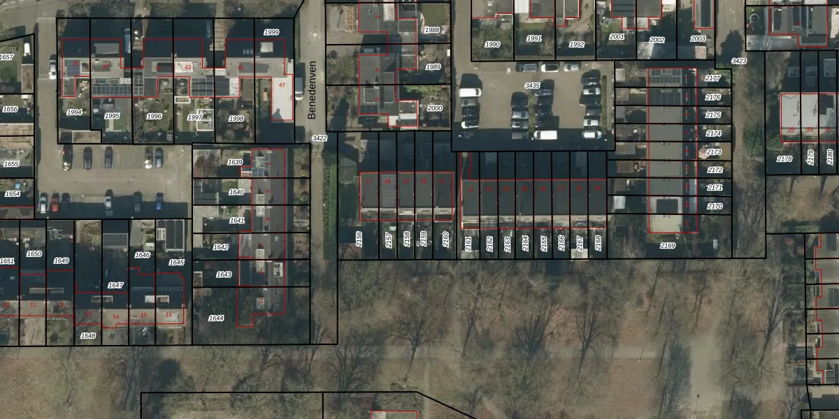 Gebruik de zoekbalk of klik op een perceel voor informatie over de adressen binnen dit perceel.