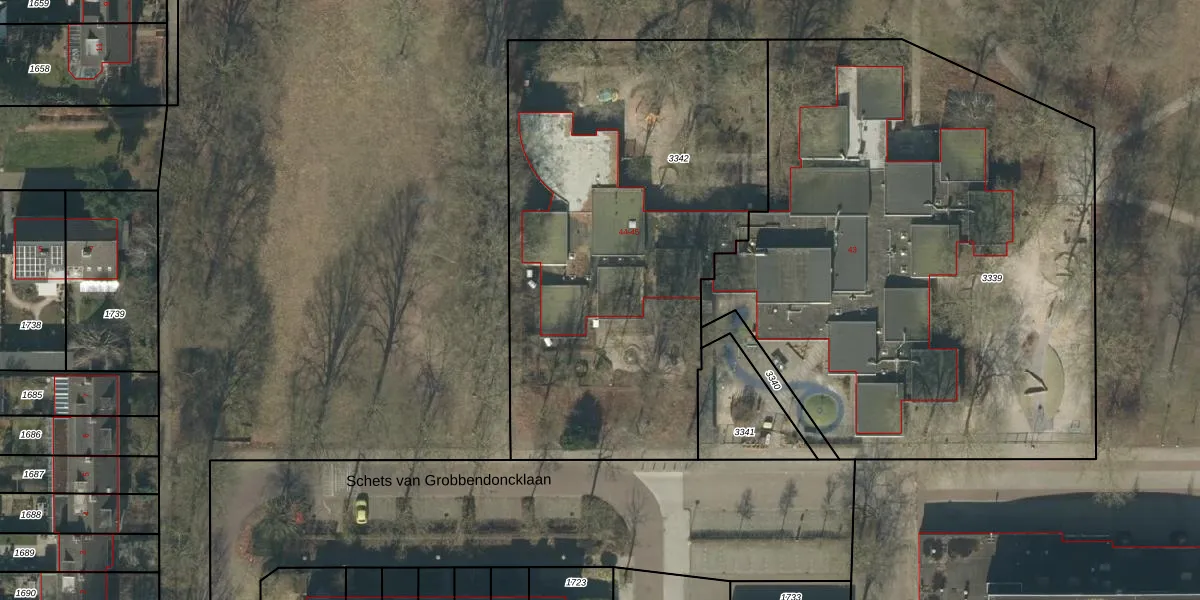 Het perceel waarop Grobbendonckpark 44 staat heeft een oppervlakte van 2624 m². Dit is een zeer groot perceel. De perceeloppervlakte wordt geregistreerd door het Kadaster. Gedetailleerde informatie over de maten van dit perceel kunt u vinden in het rapport Kadastrale kaart met maatvoering van Grobbendonckpark 44.