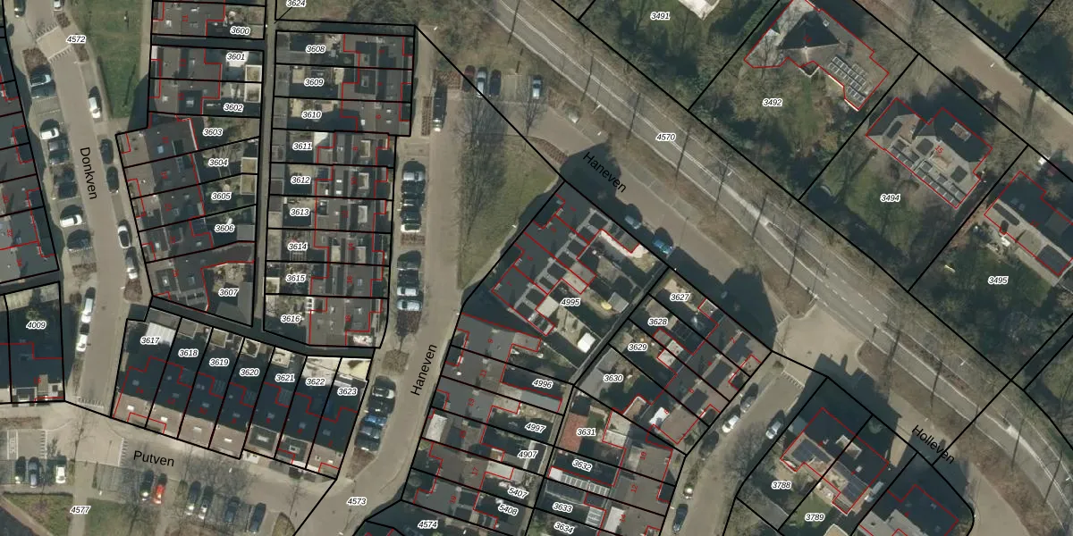 Haneven 5 is gelegen op kadastraal perceel GLE01E4995. Deze kadastrale aanduiding is uniek en wordt gebruikt door het Kadaster om eigendomsrechten en andere zakelijke rechten vast te leggen. Het perceel maakt onderdeel uit van de kadastrale gemeente Goirle.