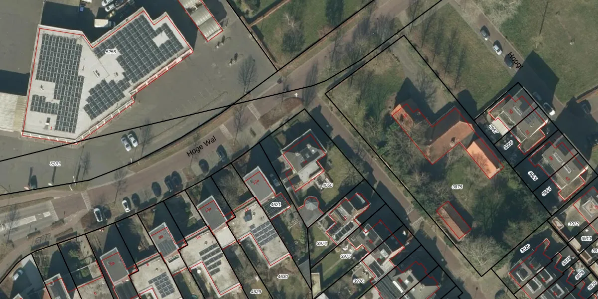 Het perceel waarop Hoge Wal 14 staat heeft een oppervlakte van 701 m². Dit is een groot perceel. De perceeloppervlakte wordt geregistreerd door het Kadaster. Gedetailleerde informatie over de maten van dit perceel kunt u vinden in het rapport Kadastrale kaart met maatvoering van Hoge Wal 14.