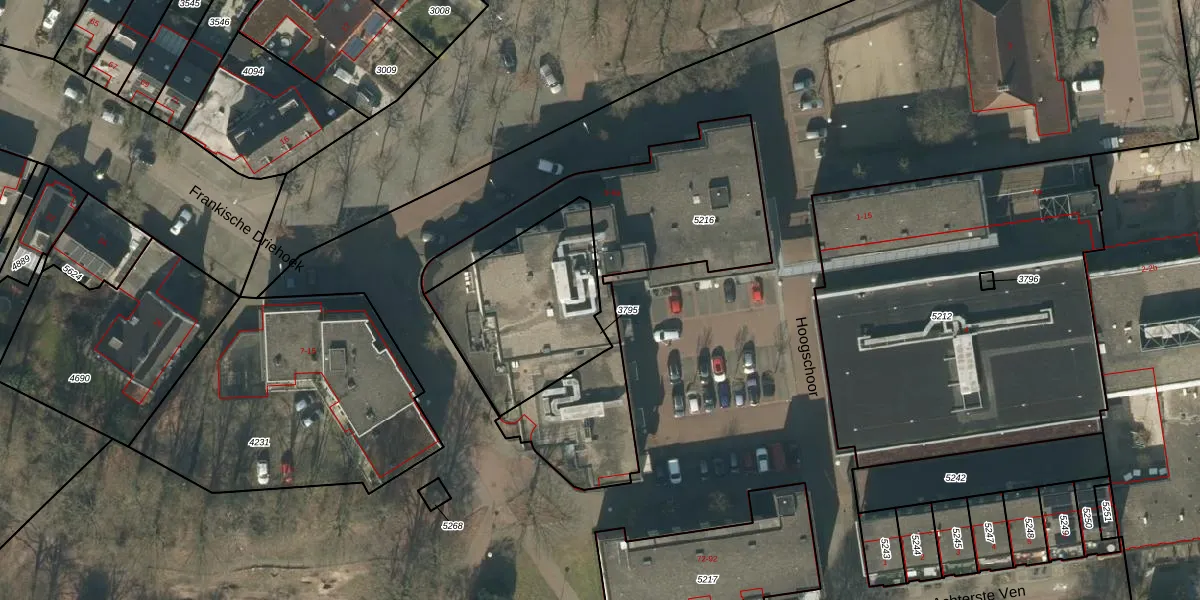Het perceel waarop Hoogschoor 22 staat heeft een oppervlakte van 1092 m². Dit is een zeer groot perceel. De perceeloppervlakte wordt geregistreerd door het Kadaster. Gedetailleerde informatie over de maten van dit perceel kunt u vinden in het rapport Kadastrale kaart met maatvoering van Hoogschoor 22.