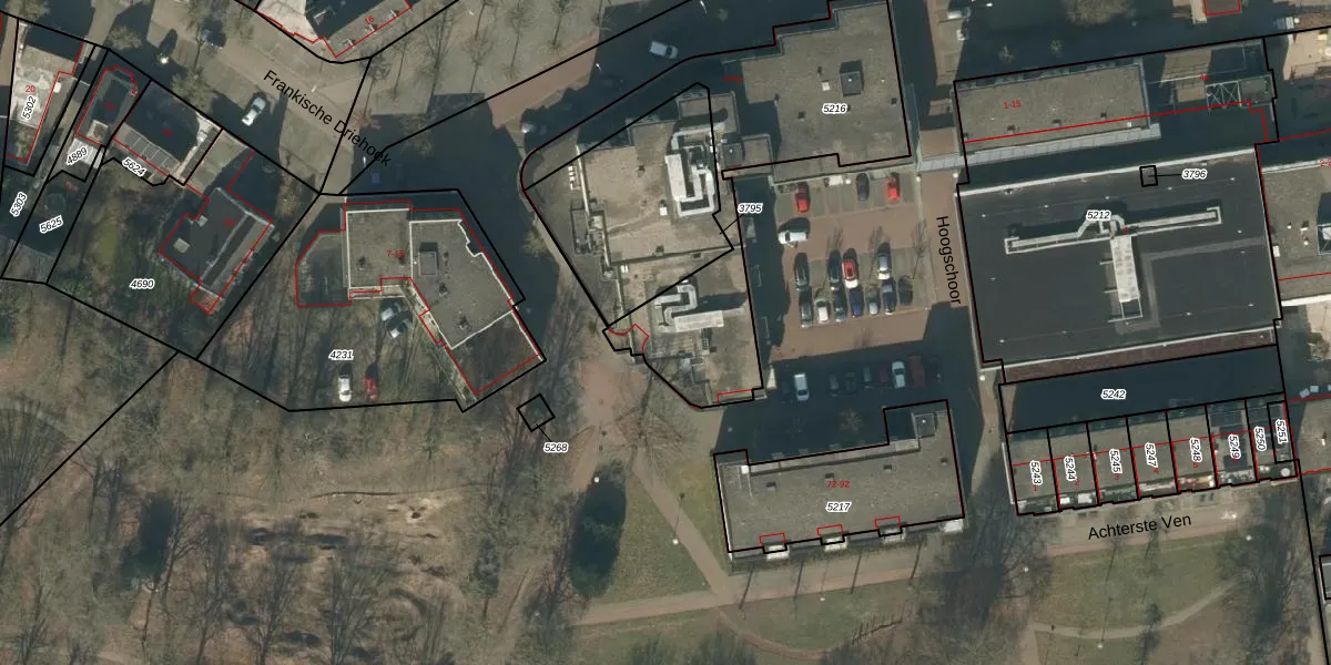 Het perceel waarop Hoogschoor 50 staat heeft een oppervlakte van 1092 m². Dit is een zeer groot perceel. De perceeloppervlakte wordt geregistreerd door het Kadaster. Gedetailleerde informatie over de maten van dit perceel kunt u vinden in het rapport Kadastrale kaart met maatvoering van Hoogschoor 50.