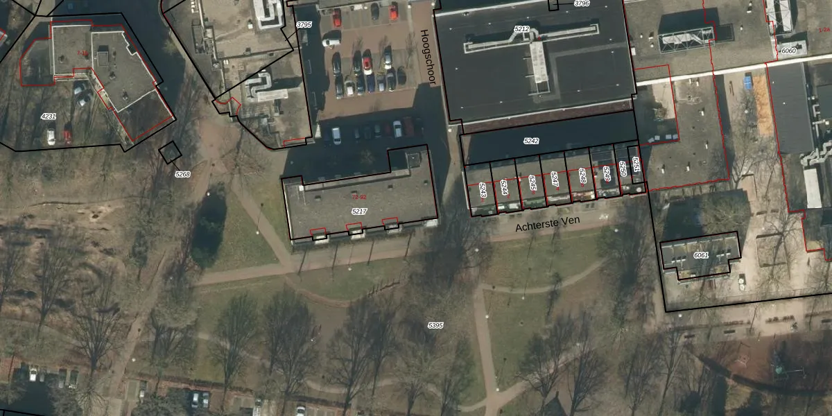 Het perceel waarop Hoogschoor 86 staat heeft een oppervlakte van 520 m². Dit is een groot perceel. De perceeloppervlakte wordt geregistreerd door het Kadaster. Gedetailleerde informatie over de maten van dit perceel kunt u vinden in het rapport Kadastrale kaart met maatvoering van Hoogschoor 86.
