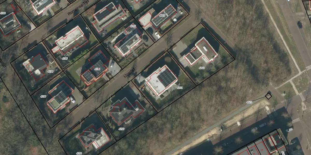 Gebruik de zoekbalk of klik op een perceel voor informatie over de adressen binnen dit perceel.