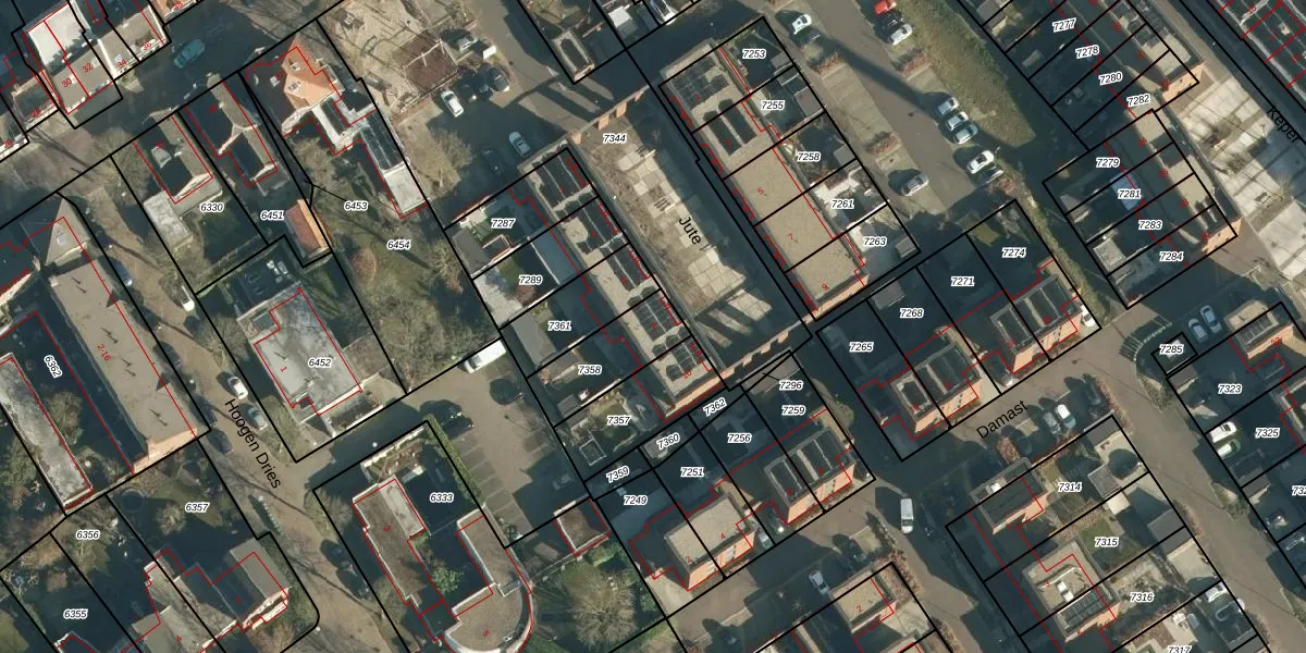 Gebruik de zoekbalk of klik op een perceel voor informatie over de adressen binnen dit perceel.
