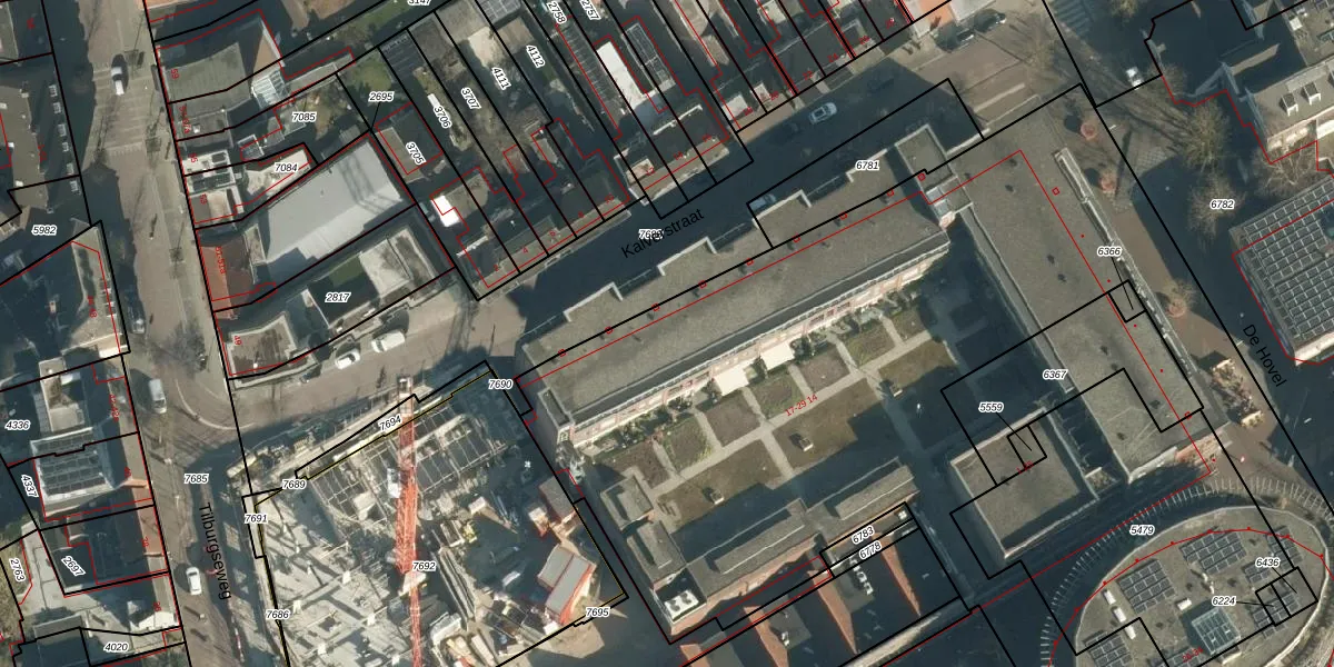 Het perceel waarop Kalverstraat 17 staat heeft een oppervlakte van 6867 m². Dit is een zeer groot perceel. De perceeloppervlakte wordt geregistreerd door het Kadaster. Gedetailleerde informatie over de maten van dit perceel kunt u vinden in het rapport Kadastrale kaart met maatvoering van Kalverstraat 17.