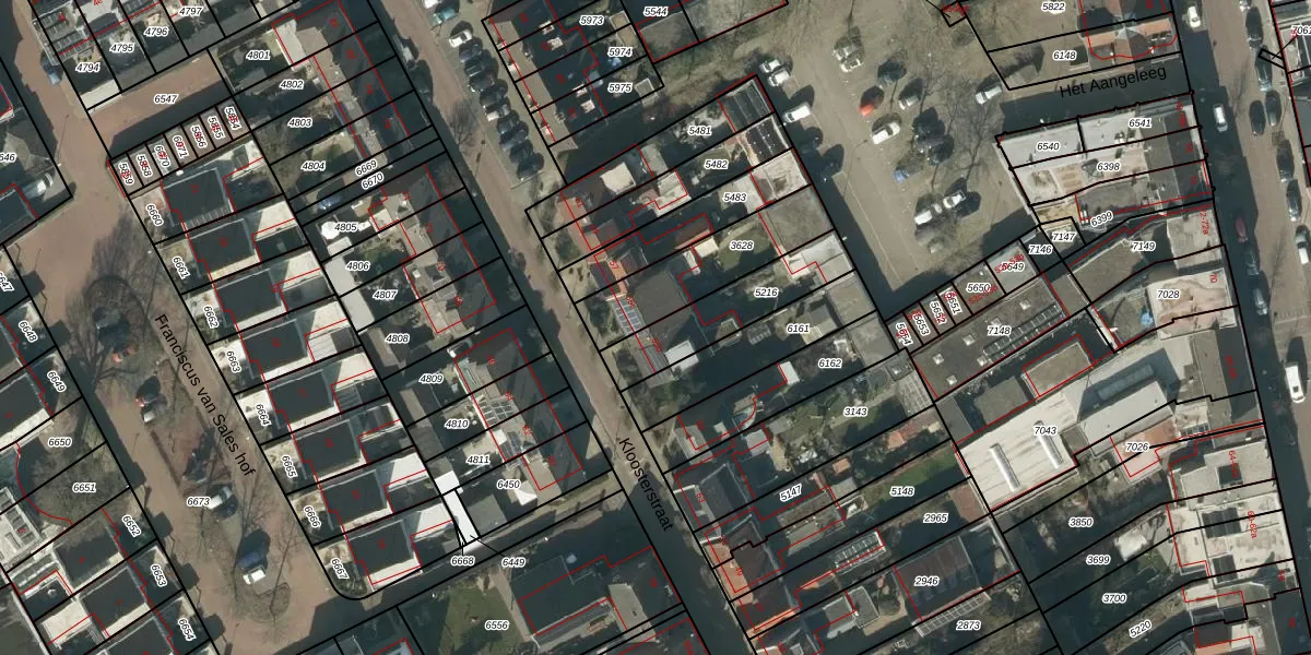 Kloosterstraat 55-b is gelegen op kadastraal perceel GLE01B5216. Deze kadastrale aanduiding is uniek en wordt gebruikt door het Kadaster om eigendomsrechten en andere zakelijke rechten vast te leggen. Het perceel maakt onderdeel uit van de kadastrale gemeente Goirle.