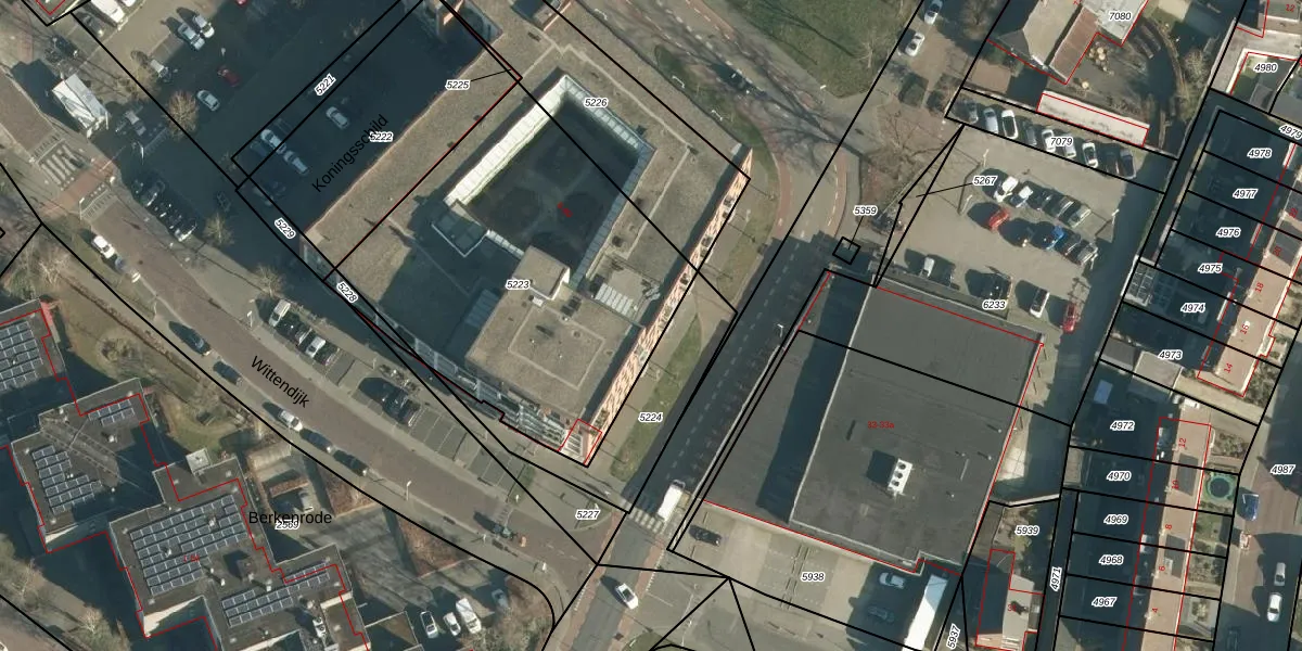 Het perceel waarop Koningsschild 37 staat heeft een oppervlakte van 1728 m². Dit is een zeer groot perceel. De perceeloppervlakte wordt geregistreerd door het Kadaster. Gedetailleerde informatie over de maten van dit perceel kunt u vinden in het rapport Kadastrale kaart met maatvoering van Koningsschild 37.