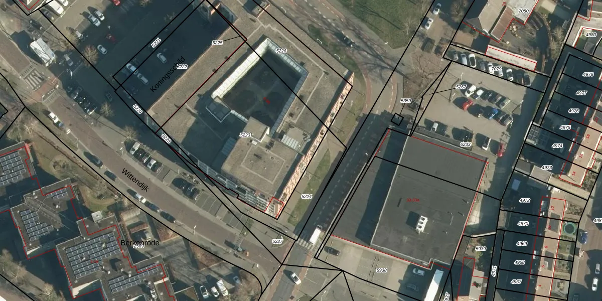 Het perceel waarop Koningsschild 59 staat heeft een oppervlakte van 1728 m². Dit is een zeer groot perceel. De perceeloppervlakte wordt geregistreerd door het Kadaster. Gedetailleerde informatie over de maten van dit perceel kunt u vinden in het rapport Kadastrale kaart met maatvoering van Koningsschild 59.