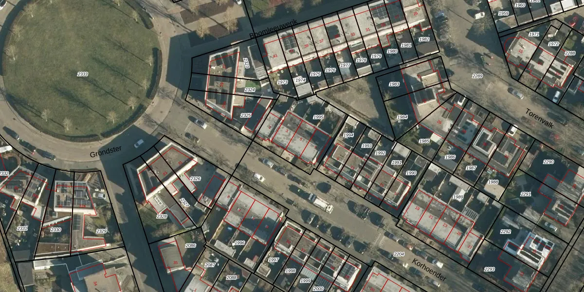 Korhoender 5 is gelegen op kadastraal perceel GLE01D1995. Deze kadastrale aanduiding is uniek en wordt gebruikt door het Kadaster om eigendomsrechten en andere zakelijke rechten vast te leggen. Het perceel maakt onderdeel uit van de kadastrale gemeente Goirle.