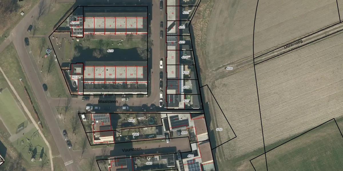 Het perceel waarop Maalsteen 13 staat heeft een oppervlakte van 163 m². Dit is een middelgroot perceel. De perceeloppervlakte wordt geregistreerd door het Kadaster. Gedetailleerde informatie over de maten van dit perceel kunt u vinden in het rapport Kadastrale kaart met maatvoering van Maalsteen 13.