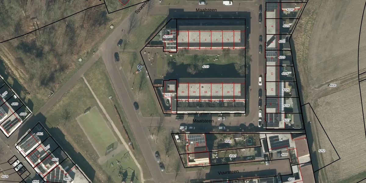 Het perceel waarop Maalsteen 20 staat heeft een oppervlakte van 2260 m². Dit is een zeer groot perceel. De perceeloppervlakte wordt geregistreerd door het Kadaster. Gedetailleerde informatie over de maten van dit perceel kunt u vinden in het rapport Kadastrale kaart met maatvoering van Maalsteen 20.
