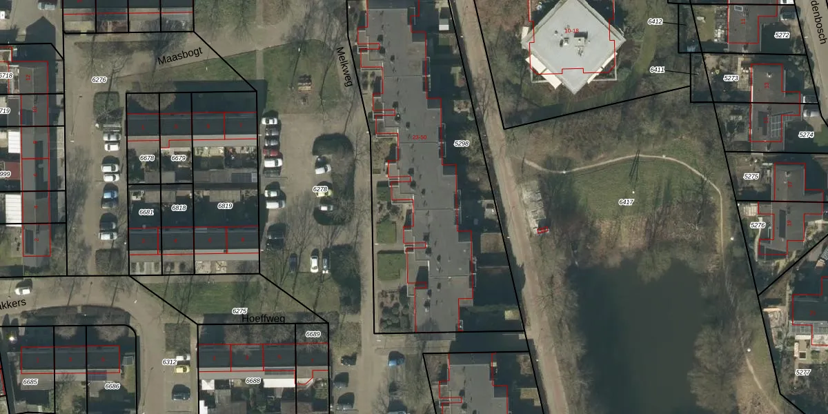 Het perceel waarop Melkweg 38 staat heeft een oppervlakte van 2352 m². Dit is een zeer groot perceel. De perceeloppervlakte wordt geregistreerd door het Kadaster. Gedetailleerde informatie over de maten van dit perceel kunt u vinden in het rapport Kadastrale kaart met maatvoering van Melkweg 38.
