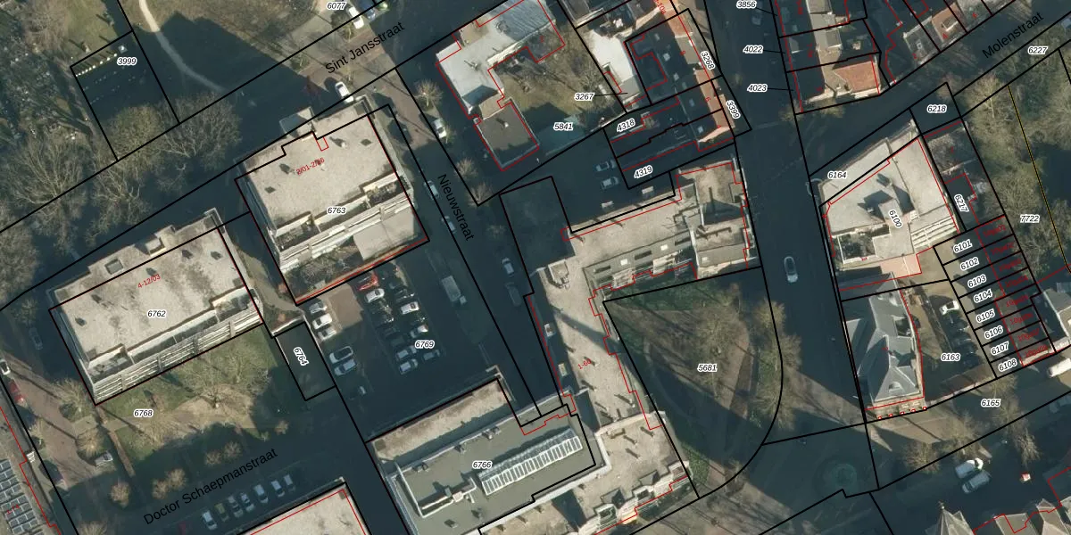 Het perceel waarop Nieuwstraat 39-a staat heeft een oppervlakte van 1850 m². Dit is een zeer groot perceel. De perceeloppervlakte wordt geregistreerd door het Kadaster. Gedetailleerde informatie over de maten van dit perceel kunt u vinden in het rapport Kadastrale kaart met maatvoering van Nieuwstraat 39-a.