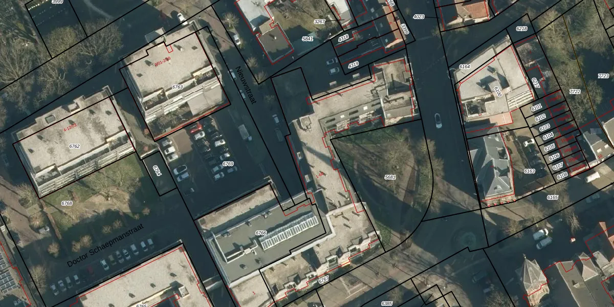 Nieuwstraat 46 is gelegen op kadastraal perceel GLE01B6767. Deze kadastrale aanduiding is uniek en wordt gebruikt door het Kadaster om eigendomsrechten en andere zakelijke rechten vast te leggen. Het perceel maakt onderdeel uit van de kadastrale gemeente Goirle.
