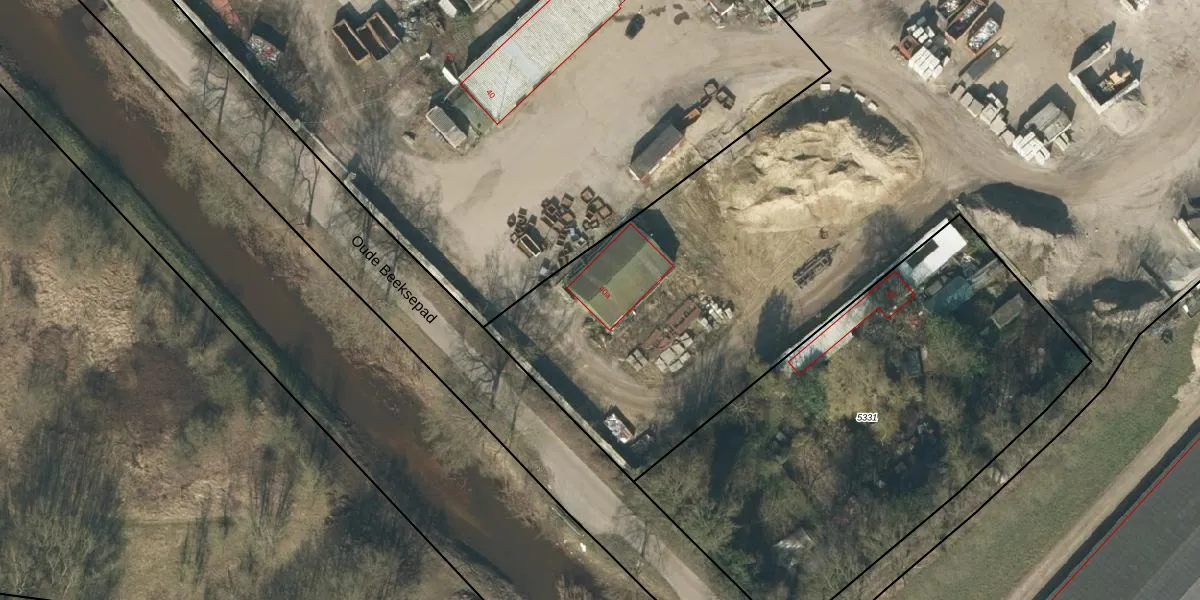Het perceel waarop Oude Beeksepad 40-a staat heeft een oppervlakte van 4,2 ha. Dit is een zeer groot perceel. De perceeloppervlakte wordt geregistreerd door het Kadaster. Gedetailleerde informatie over de maten van dit perceel kunt u vinden in het rapport Kadastrale kaart met maatvoering van Oude Beeksepad 40-a.