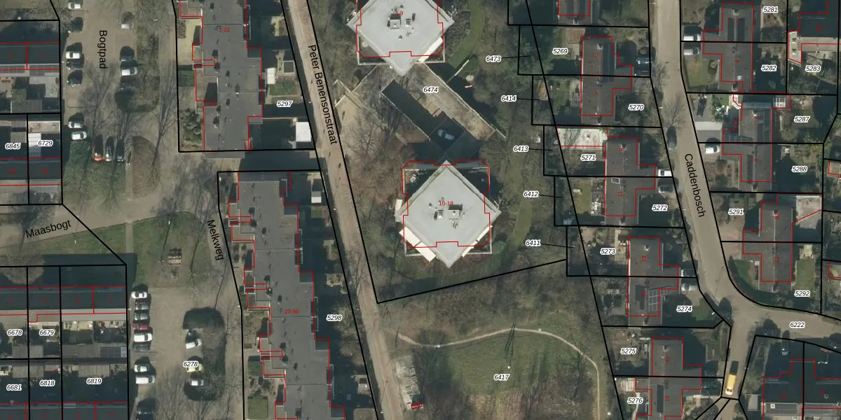 Peter Benensonstraat 15 is gelegen op kadastraal perceel GLE01B6474. Deze kadastrale aanduiding is uniek en wordt gebruikt door het Kadaster om eigendomsrechten en andere zakelijke rechten vast te leggen. Het perceel maakt onderdeel uit van de kadastrale gemeente Goirle.