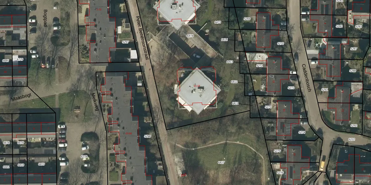 Peter Benensonstraat 16 is gelegen op kadastraal perceel GLE01B6474. Deze kadastrale aanduiding is uniek en wordt gebruikt door het Kadaster om eigendomsrechten en andere zakelijke rechten vast te leggen. Het perceel maakt onderdeel uit van de kadastrale gemeente Goirle.