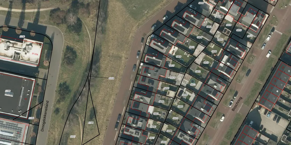 Gebruik de zoekbalk of klik op een perceel voor informatie over de adressen binnen dit perceel.