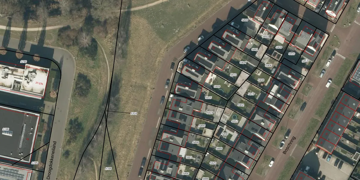 Gebruik de zoekbalk of klik op een perceel voor informatie over de adressen binnen dit perceel.