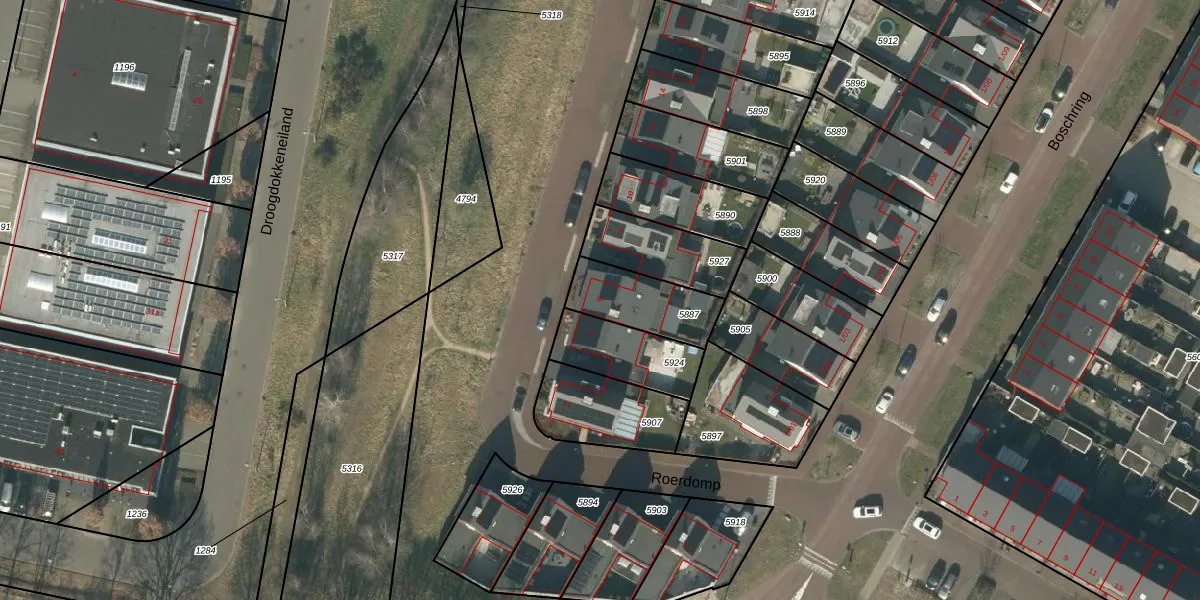 Roerdomp 6 is gelegen op kadastraal perceel GLE01E5887. Deze kadastrale aanduiding is uniek en wordt gebruikt door het Kadaster om eigendomsrechten en andere zakelijke rechten vast te leggen. Het perceel maakt onderdeel uit van de kadastrale gemeente Goirle.
