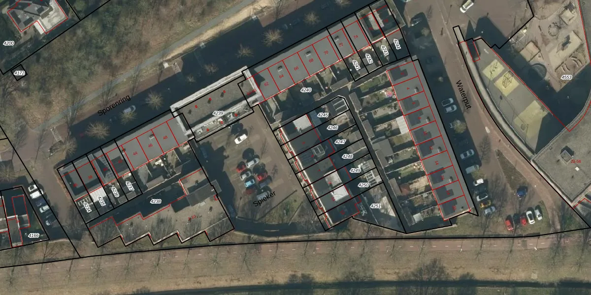 Het perceel waarop Spieker 3 staat heeft een oppervlakte van 142 m². Dit is een middelgroot perceel. De perceeloppervlakte wordt geregistreerd door het Kadaster. Gedetailleerde informatie over de maten van dit perceel kunt u vinden in het rapport Kadastrale kaart met maatvoering van Spieker 3.