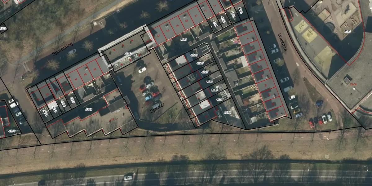 Gebruik de zoekbalk of klik op een perceel voor informatie over de adressen binnen dit perceel.