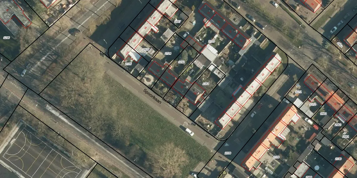 Het perceel waarop Spoorbaan 16 staat heeft een oppervlakte van 3705 m². Dit is een zeer groot perceel. De perceeloppervlakte wordt geregistreerd door het Kadaster. Gedetailleerde informatie over de maten van dit perceel kunt u vinden in het rapport Kadastrale kaart met maatvoering van Spoorbaan 16.