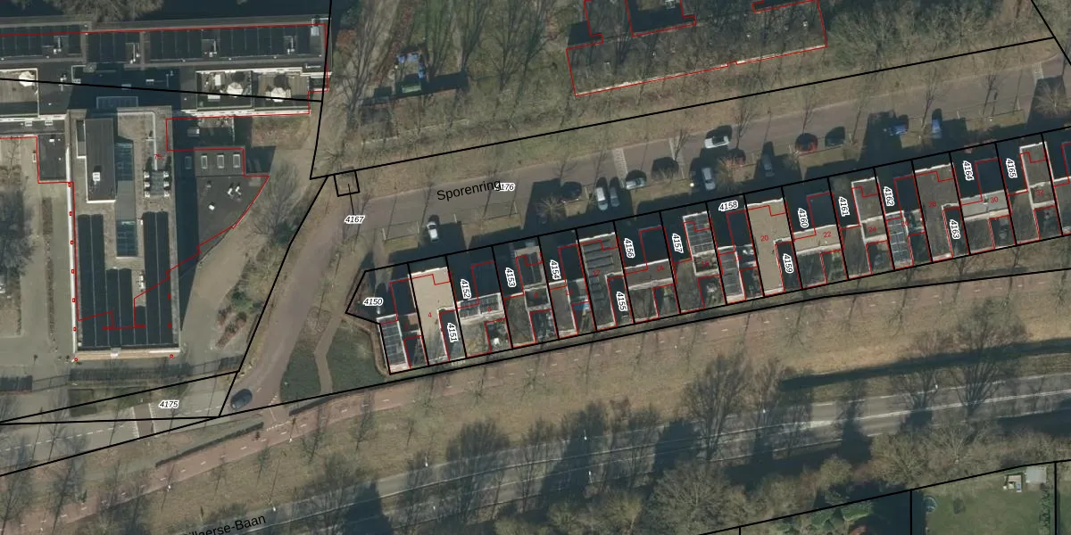 Het perceel waarop Sporenring 8 staat heeft een oppervlakte van 174 m². Dit is een middelgroot perceel. De perceeloppervlakte wordt geregistreerd door het Kadaster. Gedetailleerde informatie over de maten van dit perceel kunt u vinden in het rapport Kadastrale kaart met maatvoering van Sporenring 8.