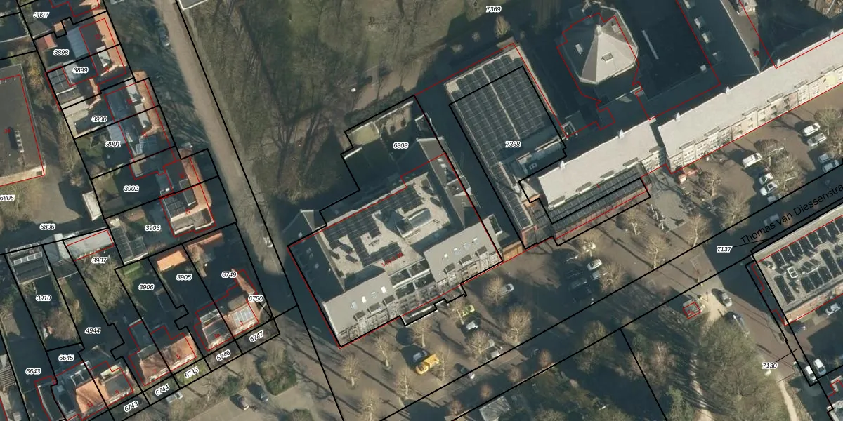 Thomas van Diessenstraat 1-35 is gelegen op kadastraal perceel GLE01B6808. Deze kadastrale aanduiding is uniek en wordt gebruikt door het Kadaster om eigendomsrechten en andere zakelijke rechten vast te leggen. Het perceel maakt onderdeel uit van de kadastrale gemeente Goirle.