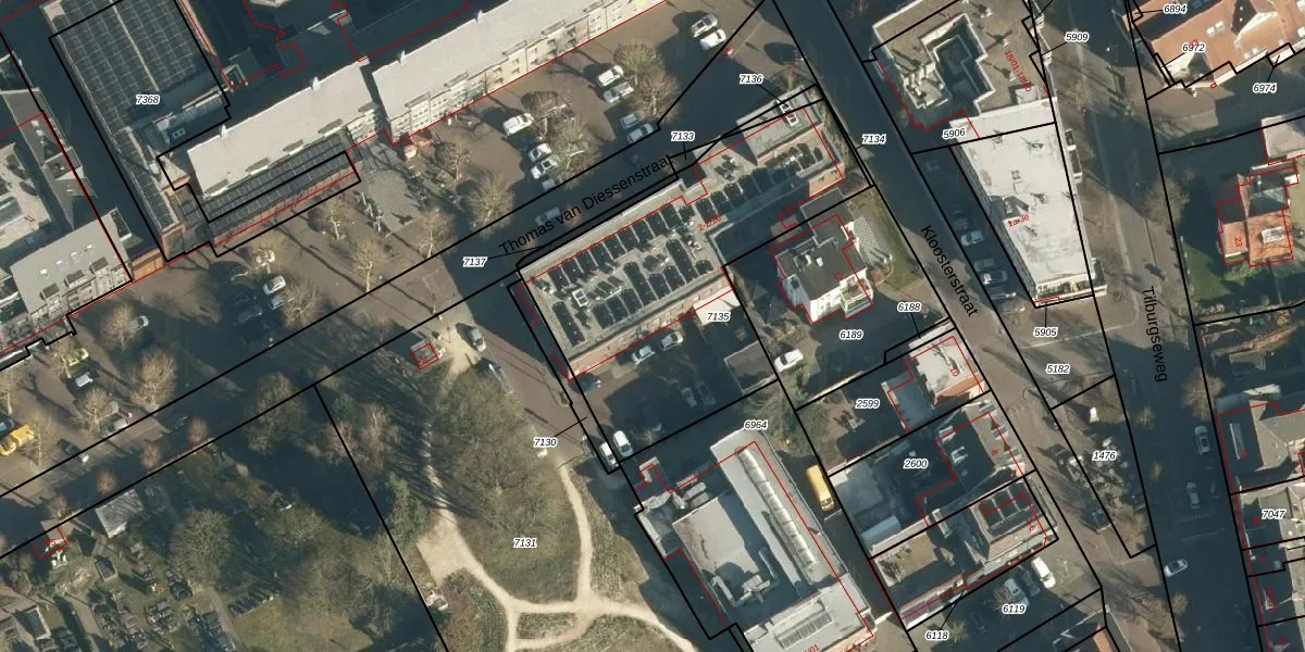 Thomas van Diessenstraat 2-01 is gelegen op kadastraal perceel GLE01B7135. Deze kadastrale aanduiding is uniek en wordt gebruikt door het Kadaster om eigendomsrechten en andere zakelijke rechten vast te leggen. Het perceel maakt onderdeel uit van de kadastrale gemeente Goirle.