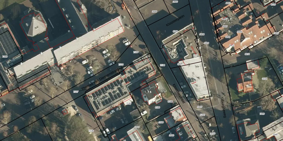 Thomas van Diessenstraat 2-18 is gelegen op kadastraal perceel GLE01B7135. Deze kadastrale aanduiding is uniek en wordt gebruikt door het Kadaster om eigendomsrechten en andere zakelijke rechten vast te leggen. Het perceel maakt onderdeel uit van de kadastrale gemeente Goirle.