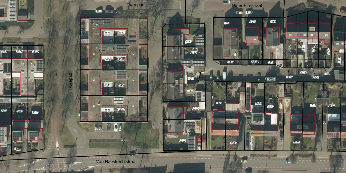 Gebruik de zoekbalk of klik op een perceel voor informatie over de adressen binnen dit perceel.